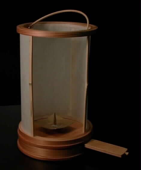 外側を回すと全体が和紙で覆われ.風などで火が消えません。取っ手は中に収納出来ます。